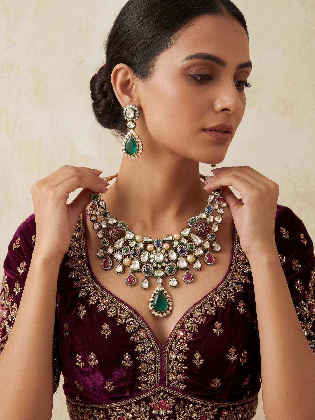 Moissanite Polki And Multi Colored Stone Choker Necklace Set
