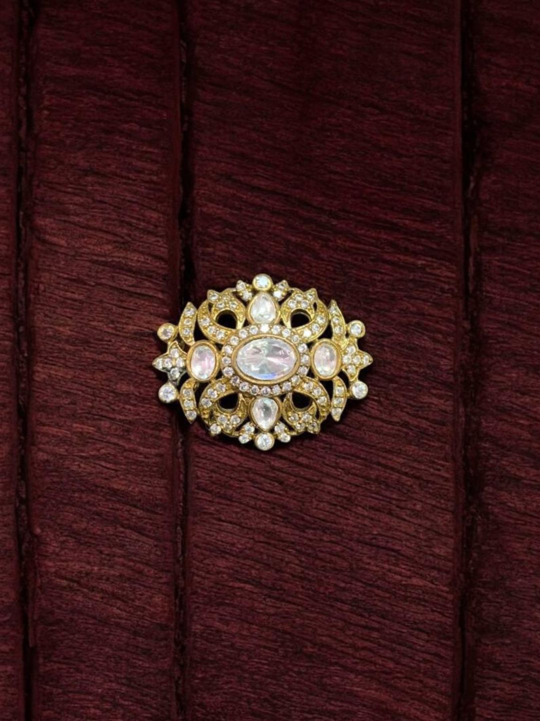 Gold Plated Statement Victorian Kundan Uncut Polki Brooch