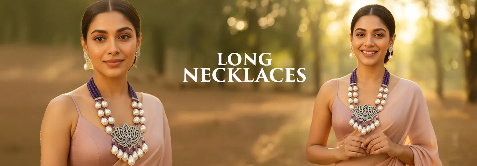 Styling a saree? Nothing beats a bold long necklace for saree that balances the pallu and neckline gracefully.