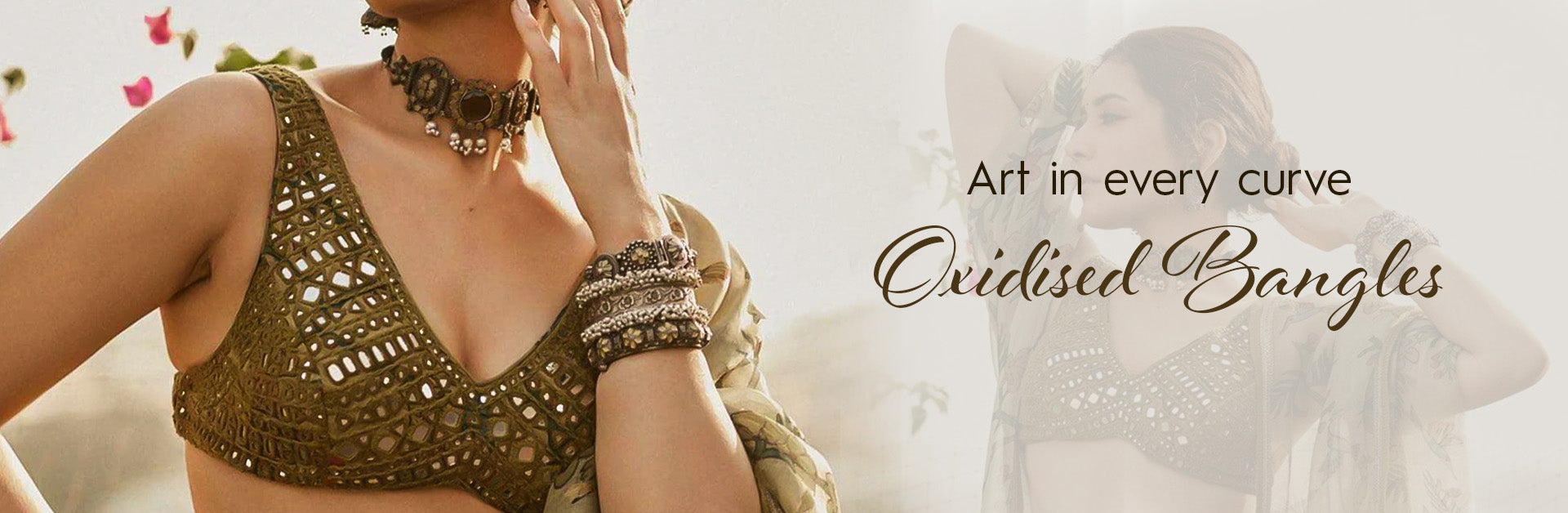 Gorgeous, did you like our trendy oxidised bangles? Sure, you must be awestruck looking at the outstanding choices. Craving to pamper yourself with an iconic style oxidised bangles set?