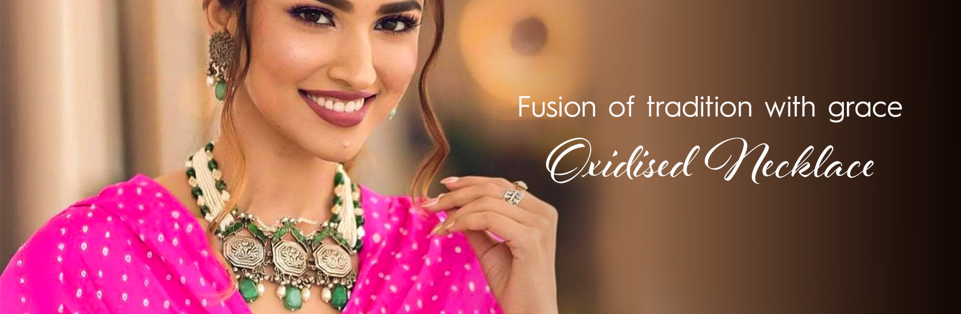 Hi, beauties! Have you ever adorned a stunning piece of oxidised necklace? If not, then let us tell you pairing an oxidised necklace set whether it be an oxidised long necklace, oxidised choker necklace, or oxidised silver necklace set can be a mind-blowing choice. Curated with premium German silver polish, these artificial necklaces can instantly bring a powerful and timeless appeal to your overall style.