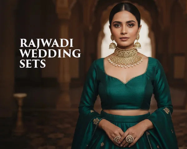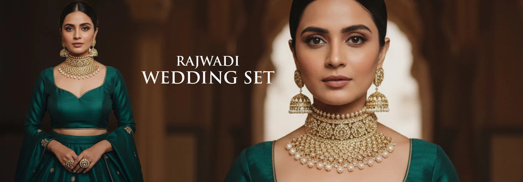 Ishhaara holds a wide range of Rajput bridal jewellery. Some of the popular and premium styles of rajputi jewellery sets include the Rajwadi Choker Set, Rajwadi Full Bridal Set, Rajwadi Pendant Necklace Set, Rajwadi Long Necklace Set, Rajwadi Chooda, and Rajwadi Short Necklace Set.