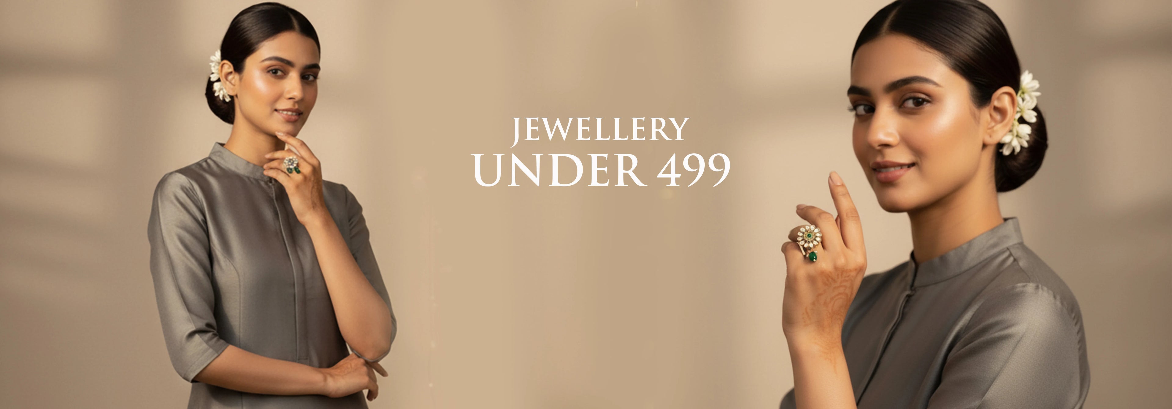 Coming in iconic styles like classic Gold Rings under 499, timeless Silver Rings under 499, exquisite Traditional Rings under 499, and statement Oxidised Rings under 499, these pieces are perfect for adding a touch of sophistication. Pair these fine jewellery with your attire and complete your casual day out or festive look instantly.
