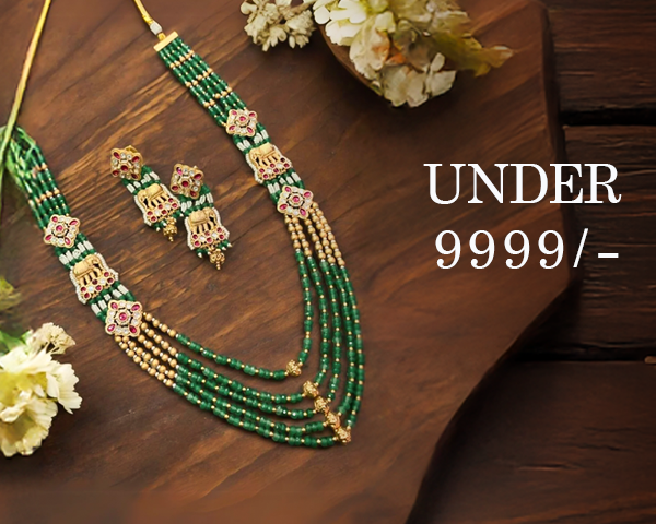 Some of the most common choices of choker necklaces that will flawlessly bring a glowing appeal include Pearl Choker Necklaces Under 9999, Meenakari Choker Necklaces Under 9999, Kundan Choker Necklaces Under 9999, Temple Choker Necklaces Under 9999, and Semi-precious Stone Studded Choker Necklaces Under 9999.