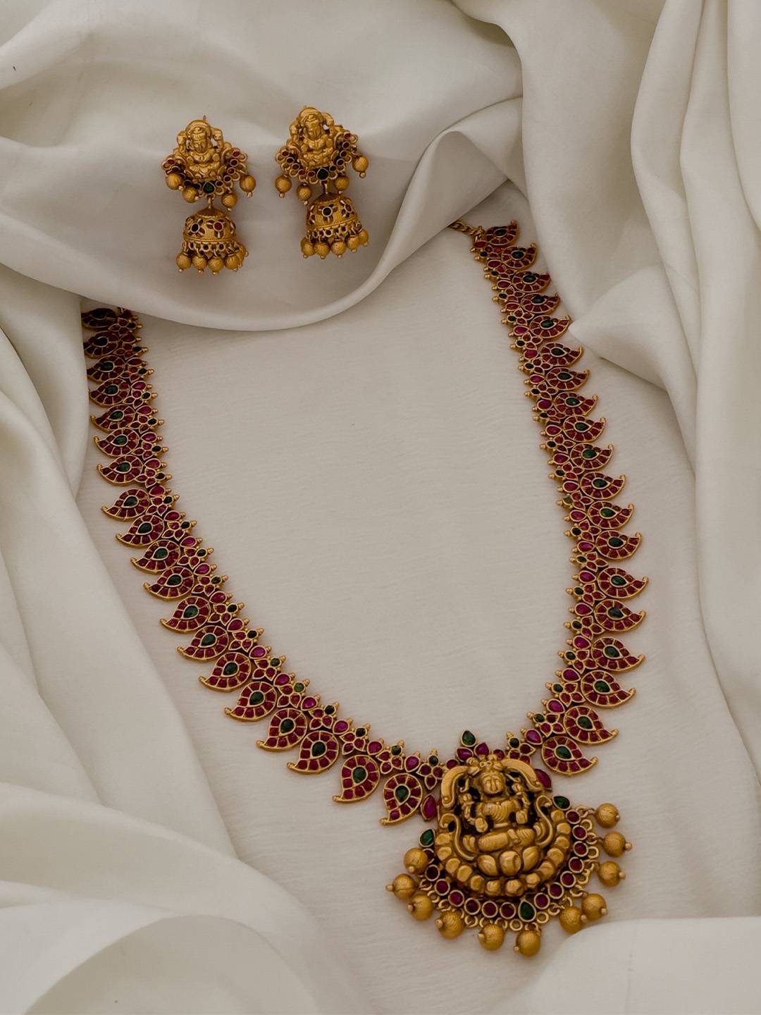 Goddess Nakshi Design Gold Plated Necklace With Earrings