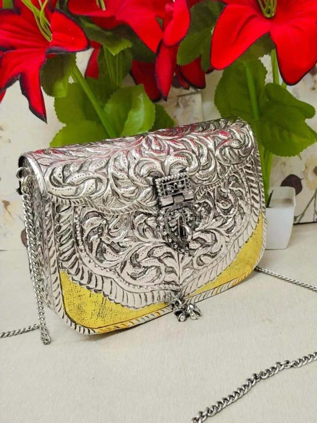 Exclusive Hand Carved High Quality German Silver Dual Tone Purse