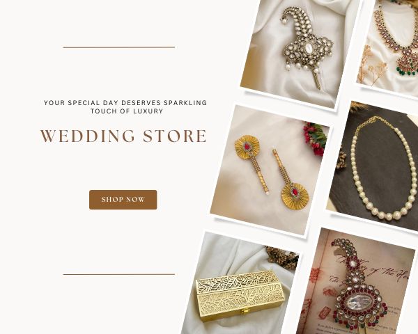 From intricate kundan and polki bridal sets to sophisticated groom safa and malas, every piece in a wedding jewellery store is curated to blend tradition with modern elegance. Excited to adorn a piece of artificial jewellery that tells a story? Explore our wedding store collection and make your wedding truly unforgettable!