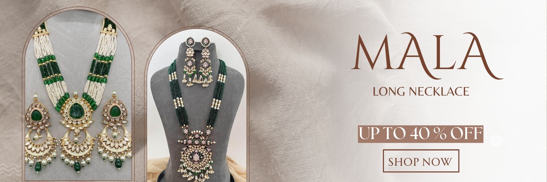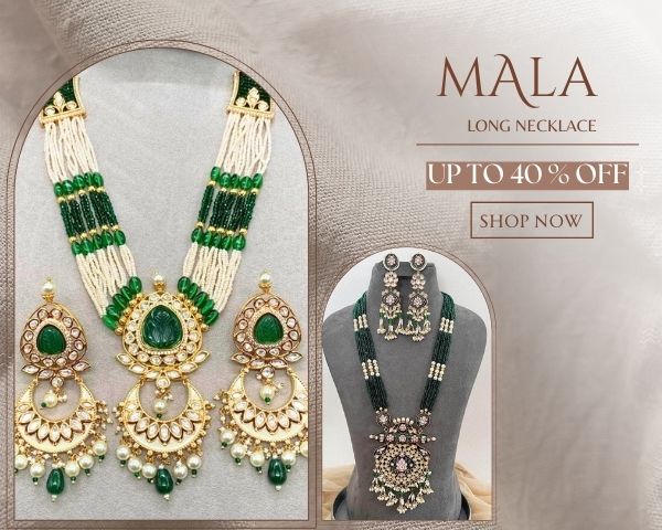 Our long necklaces are imitation jewellery, made with premium-quality artificial materials like gold polish, kundan, pearls, and stones—ideal for affordable luxury looks.