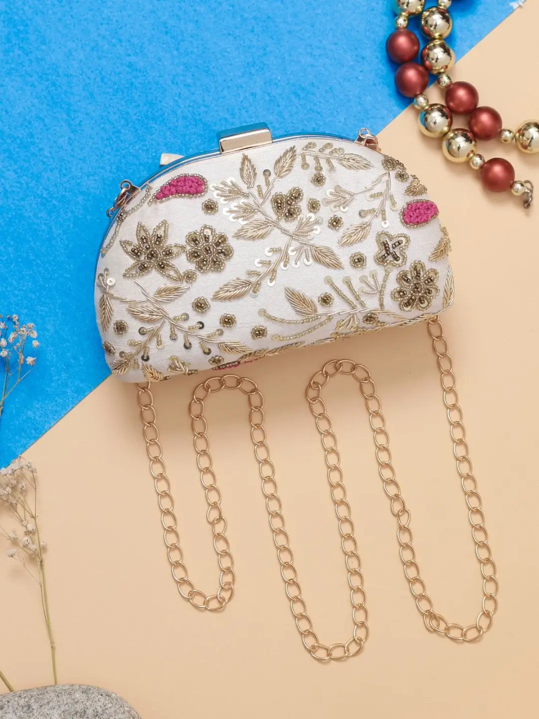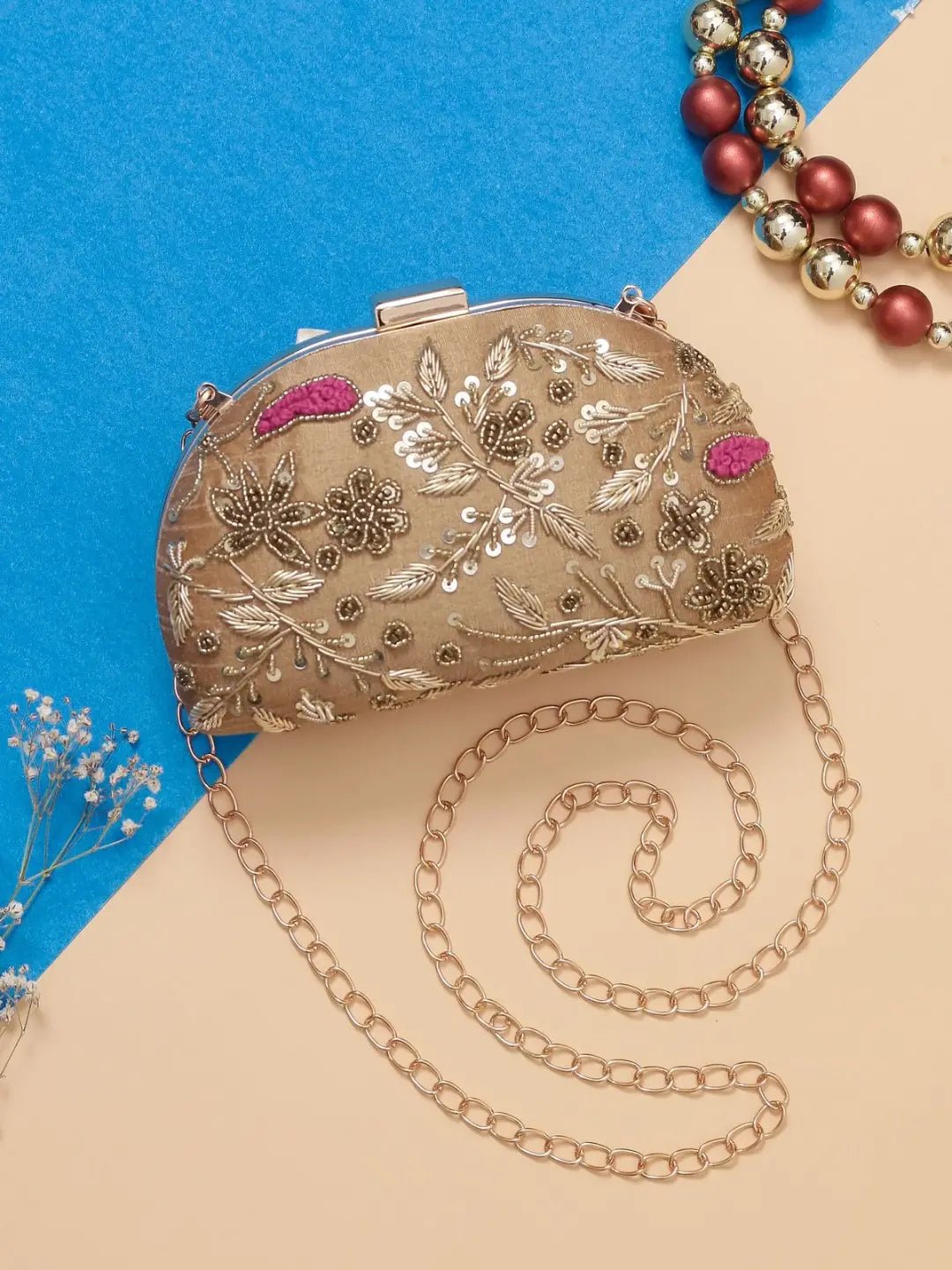 Ishhaara Designer D Shape Frame Embroidered Clutch