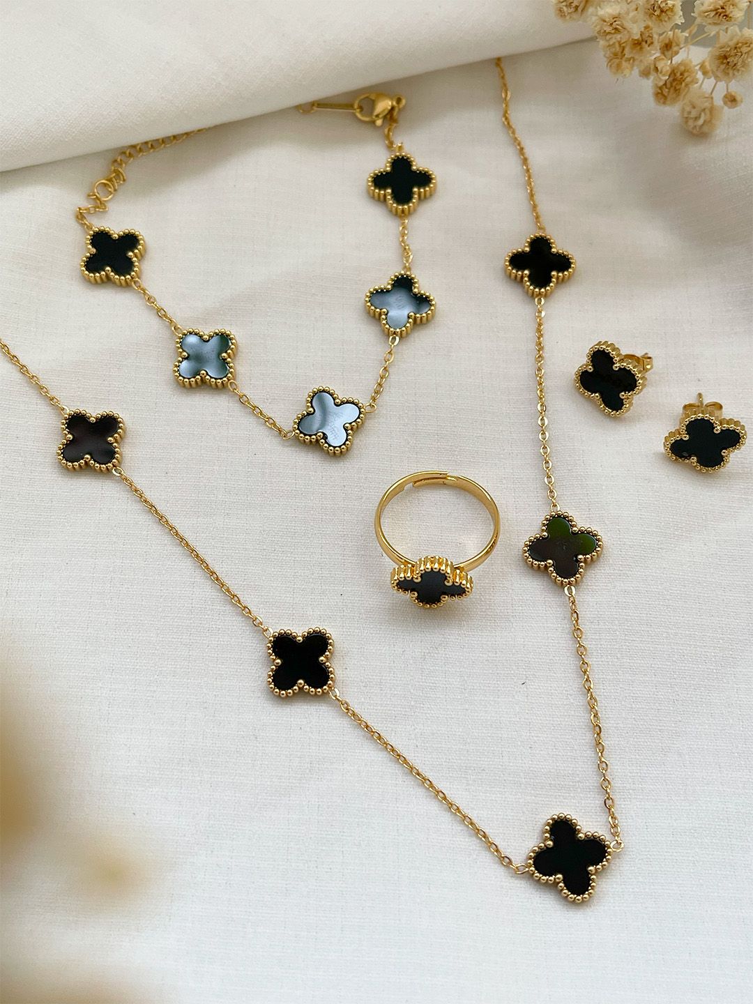 Ishhaara White Leaf Clover Necklace