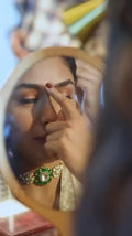 Complement this choker set with matching gold or Kundan bangles. This will add an unexpected twist to your style.