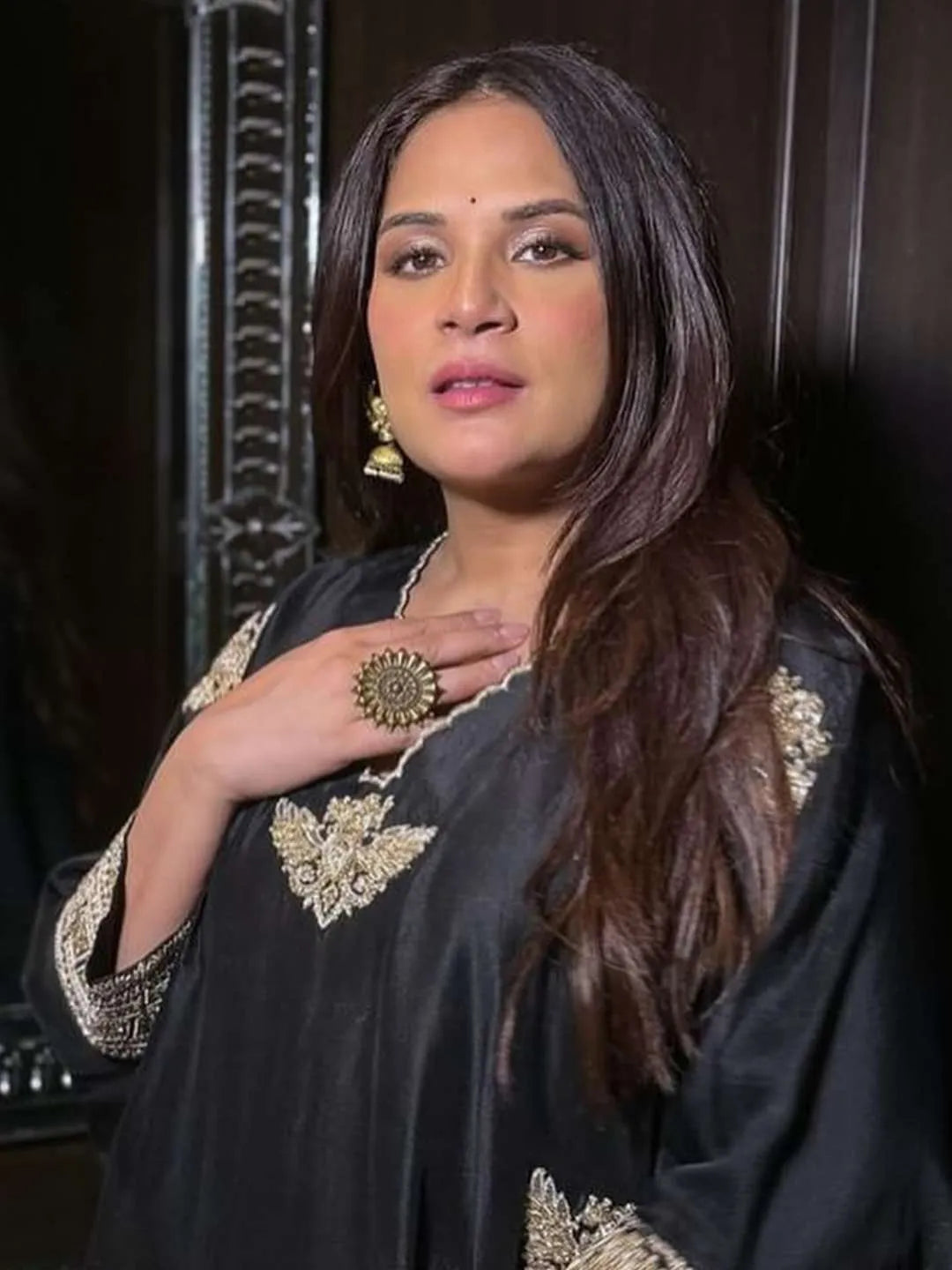 Richa Chadha In Oxidised Golden Chrysathrus Ring