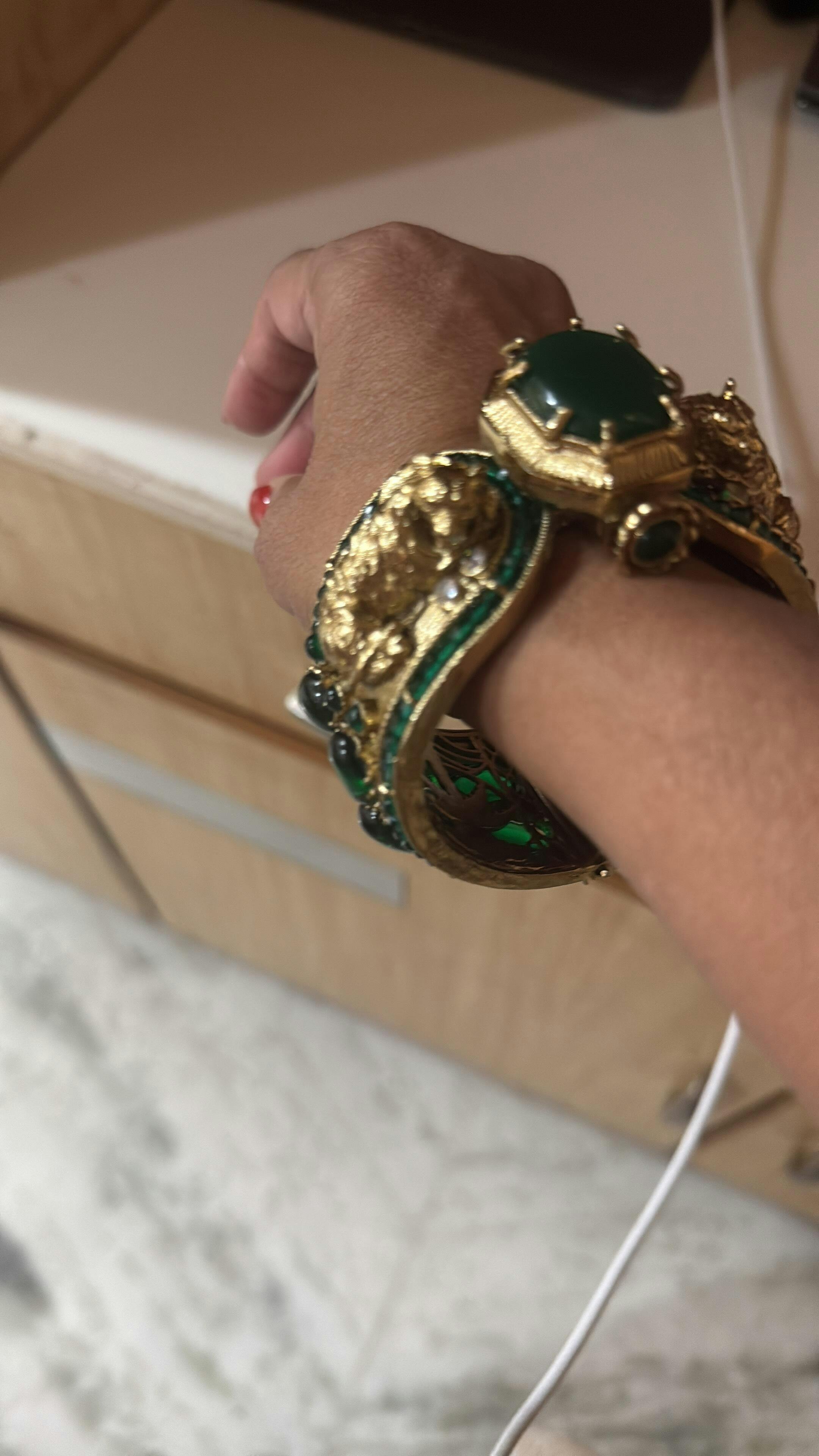 Bengal Tiger Motif: This kada bracelet features two exquisitely sculpted Bengal tigers on both sides. This makes it an ideal choice for paying homage to the Sabyasachi fashion game.
